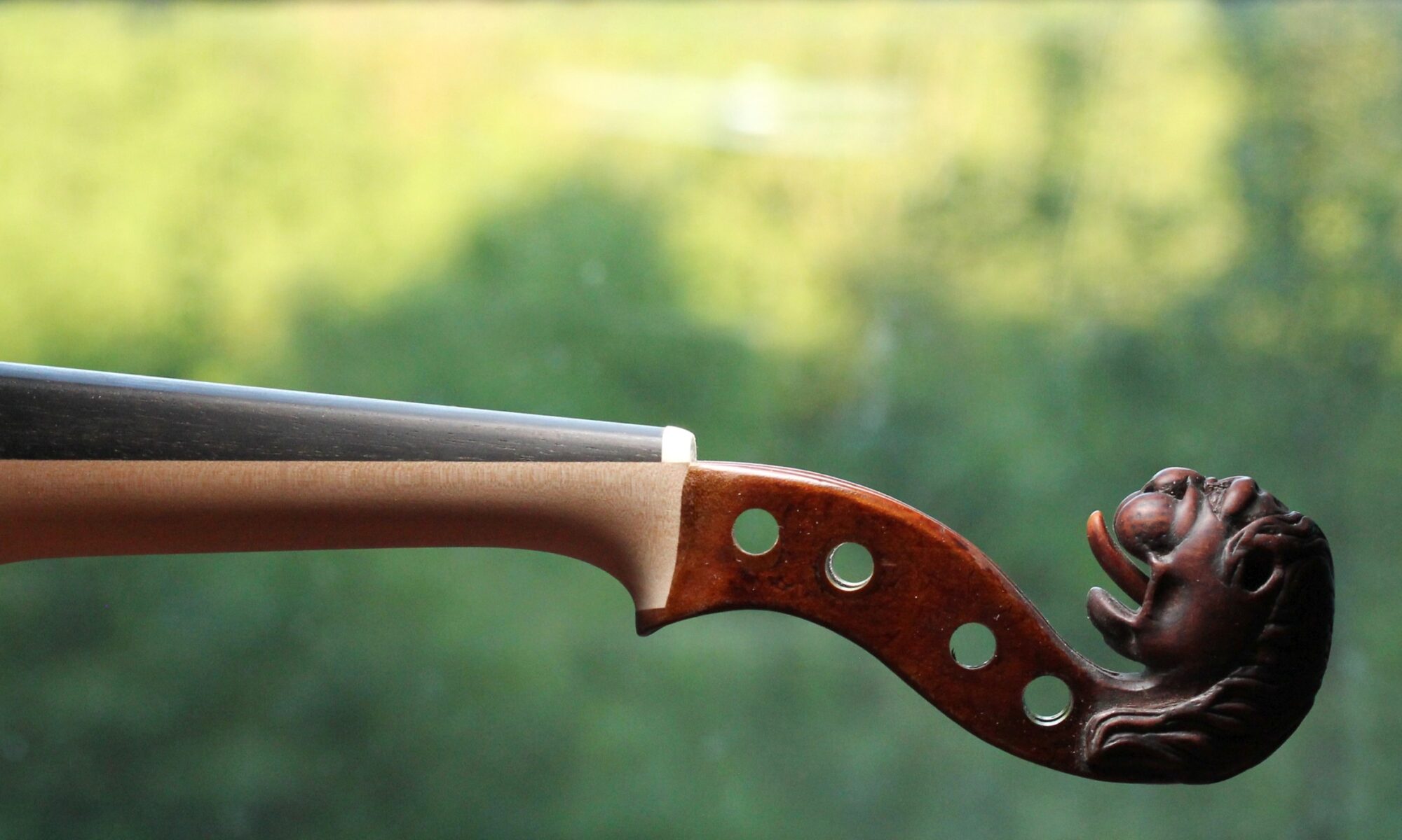 Nach Abschluss der Retuschen an Halsfuß und Kragen stand die Klangeinstellung. Weder die Stege, geschweige denn die Saiten an den Vergleichsinstrumenten sind original erhalten. So stützen sich Stegmodelle, und auch der Saitenhalter, auf anderweitige Originale oder Ikonographien aus der Epoche. Aus den mehreren, maßgefertigten Modellen ging ein flach gewölbter Saitenhalter mit Ahornkern und ein Steg mit tiefliegender Basis, reichlich Flügelmasse und Doppelherz als die klanglich befriedigendste Lösung hervor. Auf Saitenseite begann die Suche bei dem, was historisch überliefert ist. Im Detail ist es jedoch immer das Instrument, das einem zeigt, was es braucht. Die optimale Spannungsverteilung der vier Saiten zu finden, die zusammen bei etwa 21kg Saitenzuggewicht zu liegen kamen, war eine beiderseits leidenschaftliche Herausforderung. Mittlerweile gut eingespielt, erfreut sich die so „wiedergeborene“ Geige in den Händen eines Barockprofis reger Konzerttätigkeit. Hoffentlich noch einmal 350 Jahre.