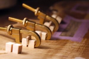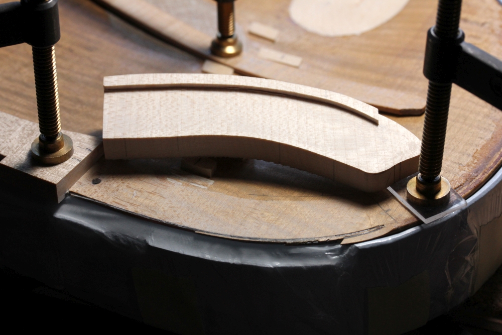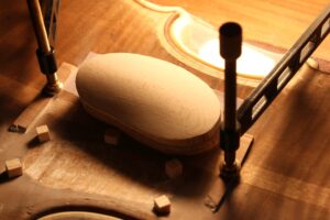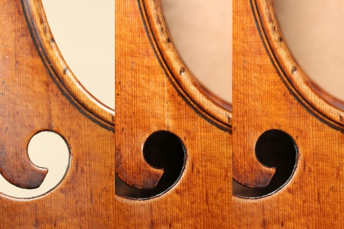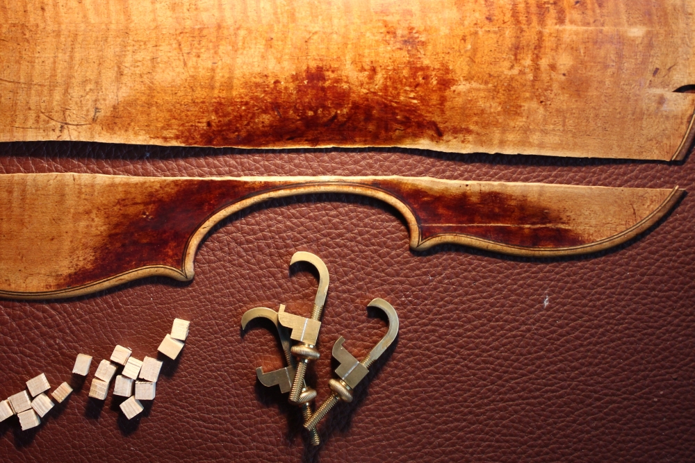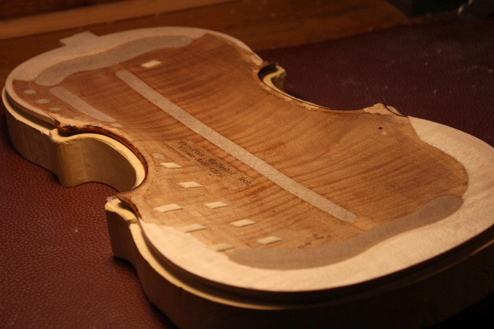 Bei Rückbau-Projekten folge ich keinem Standard-Rezept; es kann genau so wenig zum Erfolg führen wie im Neubau. Eine Einordnung in den musikhistorischen und spieltechnischen Kontext ist erste Orientierung für die Überlegungen. Studium der Quellenlage und, so möglich, original erhaltener Vergleichsinstrumente oder Teilen davon, oft im Austausch mit Sammlungen, Museen oder Kollegen, lenken die Parameter weiter. Geigenbauerisches Feingefühl für das eine spezifische Instrument und seinen Zustand, seine Eigenart bestimmen dann aber erst im Detail, was möglich und sinnvoll ist. Dies sehe ich als unerlässlich, da kein Vergleichinstrument ein Original des rückzuführenden Instruments sein kann.